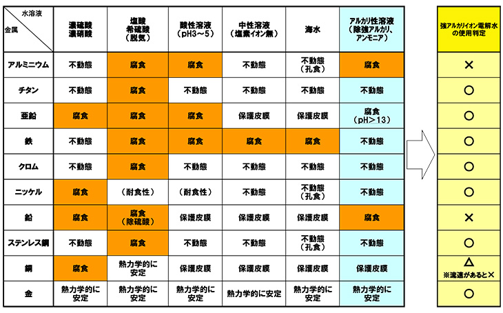 金属に対する耐食性