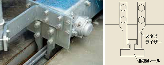 サイドブラシと支柱にスタビライザーを採用し移動レールをがっちりととらえ、傾きを抑え水平安定を保ちスムーズな稼働をお約束します。