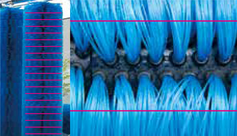 トップブラシ及びサイドブラシは、トルク検知制御システムによりブラシの面圧をコントロールし、適度な接触圧で塗装面を炒めることなく、きれいに洗い上げます。