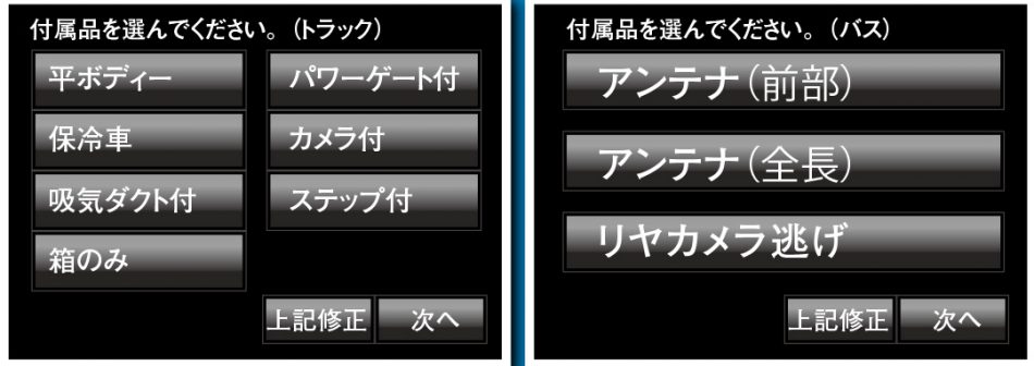 2 車種選択画面が表示 それぞれの付属品を選択