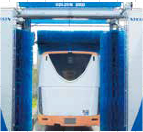 洗車ブラシが触覚となって、車体形状を検知しながら洗車を行うユニークな機構を採用。大型車両洗車の大幅な省力化を実現し、さらに企業イメージをクリーンアップします。