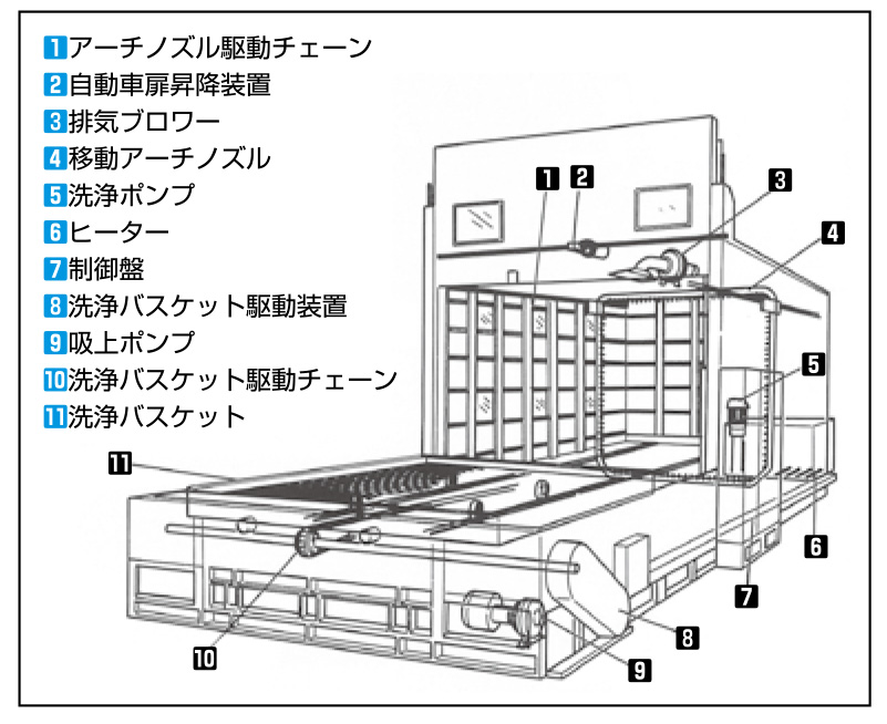 台車自動搬出入アーチノズル洗浄方式 JW-NS101 ·102·103